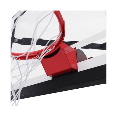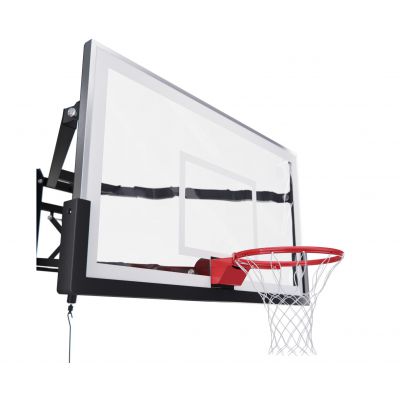 Щит изготовлен из прочного закалённого стекла толщиной 12 мм — материала, обеспечивающего отличный отскок мяча и устойчивость к ударам. Его размеры — 180 х 105 см, что делает его максимально приближенным к профессиональному оборудованию. Регулируемый вынос щита (98-116 см) повышает безопасность и удобство во время игры. Дополнительную безопасность обеспечивает защита Poly Pade, установленная по нижнему краю щита.