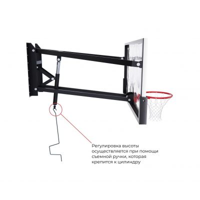| Система регулировки высоты кольца (180–305 см) и выноса щита (98–116 см) позволяет адаптировать баскетбольный щит для игроков разного возраста и уровня подготовки. | |