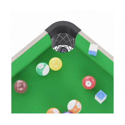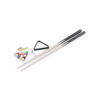 В набор входят все необходимые принадлежности: 2 кия, комплект шаров, 2 мелка, треугольник для расстановки и щётка для ухода за покрытием. Можно сразу начинать играть без дополнительных покупок.