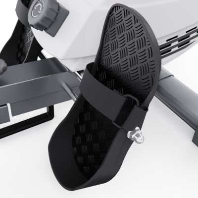Рифленые педали с регулируемыми ремешками обеспечивают надежную фиксацию ног. Также есть компенсаторы неровности пола, которые гарантируют стабильность тренажера, а транспортировочные ролики обеспечивают лёгкое и удобное перемещение, позволяя без труда менять его расположение в помещении.