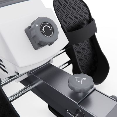 Модель рассчитана на пользователей весом до 115 кг. Слайд длиной 105 см обеспечивает естественную амплитуду движений, а длина рукоятки 42 см позволяет сохранять удобный хват и правильную биомеханику при каждом гребке. Эргономичная конструкция способствует правильному положению тела, снижая нагрузку на спину и суставы. Это полноценный тренажер для ног, который также эффективно прорабатывает мышцы спины, плечевого пояса и кора, обеспечивая комплексную нагрузку на все тело.