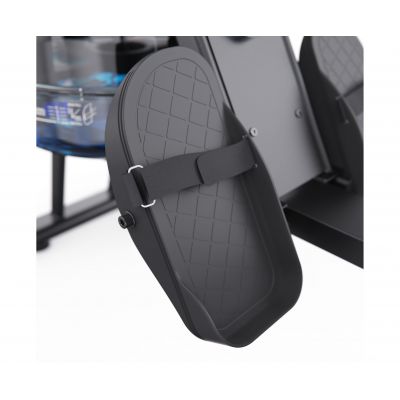 Увеличенные рифленые педали с регулируемыми ремешками обеспечивают надежную фиксацию ног, а подставка под планшет позволяет использовать устройства для удобства тренировки. Прочная направляющая обеспечивает плавное и стабильное движение, подходящее для пользователей ростом до 190 см. Регулируемый держатель снижает нагрузку на шею, также есть компенсаторы неровности пола, которые гарантируют стабильность тренажера, а транспортировочные колеса позволяют легко перемещать тренажер по помещению.