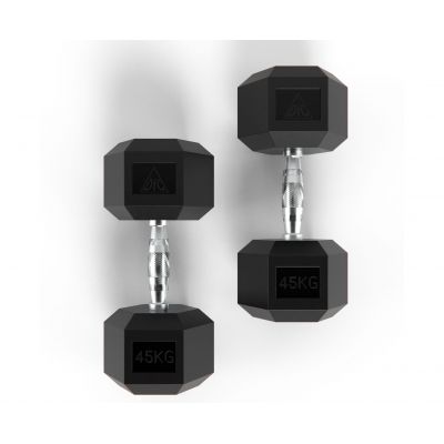 Гантель обрезиненная DB001-45 с хромированной ручкой. Вес гантели 45 кг, в комплекте 2 штуки (пара).