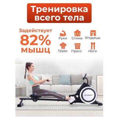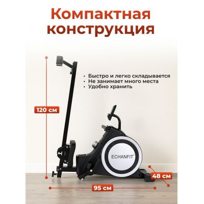 Гребной складной тренажер DFC ECHANFIT CRW4107A-N — это удобный и функциональный тренажёр для домашнего использования с магнитной системой нагрузки. Он сочетает эффективность, комфорт и простоту эксплуатации, помогая поддерживать отличную физическую форму и тренировать всё тело.