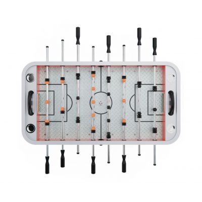 Размер стола — 144 х 76 х 87 см, а игровое поле — 118 х 68 см. Такая площадь оптимальна для маневров, точных ударов и зрелищной игры. Размер мячей — 36 мм, что соответствует стандарту для настольного футбола и обеспечивает отличную управляемость.