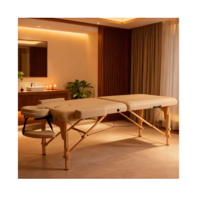 Массажный стол выполнен в цвете Camel — это тёплый и естественный оттенок, который придаёт изделию стильный и гармонично вписывается в интерьер дома или массажного кабинета.