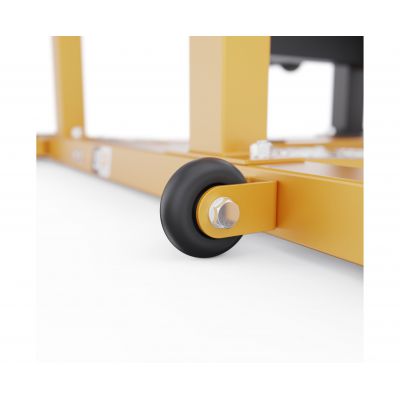 Конструкция выдерживает вес до 300 кг, а максимальная нагрузка на штангу до 200 кг. Каркас выполнен из прочной стали с профилем 70 х 50 х 2 мм, что обеспечивает высокую устойчивость даже при максимальной нагрузке. Размер тренажера в рабочем виде составляет 116,3 х 127,4 х 143,2 см, что делает его устойчивым и удобным для выполнения упражнений.