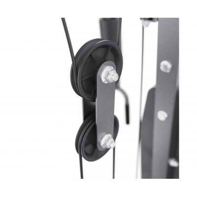 В конструкции предусмотрено 9 свободных блоков и 1 встроенный весовой блок весом 46 кг. Такая система позволяет гибко настраивать нагрузку под уровень подготовки пользователя — от начинающего до уверенного спортсмена. Силовой комплекс удобно использовать как для набора мышечной массы, так и для поддержания формы.