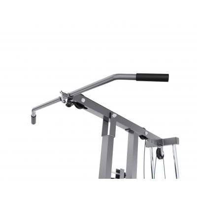 Многофункциональный силовой комплекс позволяет выполнять упражнения на грудь, спину, плечи, руки, пресс и ноги. В оснащение входят парта для бицепса, верхняя и нижняя тяга, а также тренажер «бабочка», что значительно расширяет возможности тренировок. Нижний валик предназначен для фиксации ног и выполнения упражнений на разгибание и сгибание, а также обеспечивает устойчивое положение тела при работе с верхней тягой.