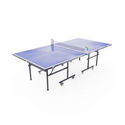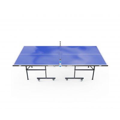 Складная конструкция делает теннисный стол удобным для хранения и транспортировки. В сложенном виде модель отличается компактностью и занимает минимум места, что позволяет удобно хранить её даже в ограниченном пространстве и без труда перемещать с помощью транспортировочных роликов.