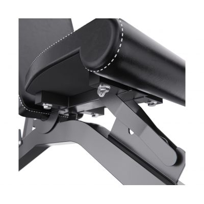 Скамья спортивная имеет регулируемую спинку, которая фиксируется в 8 различных положениях, позволяя вам подбирать нужный угол наклона. Это дает возможность выполнять как жим лежа, так и обратный жим, адаптируя скамью под ваши индивидуальные нужды. Сиденье имеет 3 уровня регулировки, что обеспечивает оптимальный комфорт и поддержку для каждого пользователя. Валики для ног из мягкого материала помогают зафиксировать ноги и избежать скольжения во время выполнения упражнений.