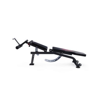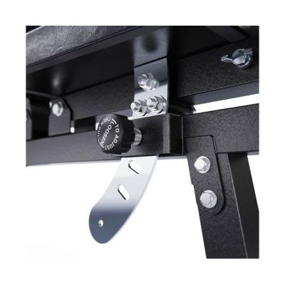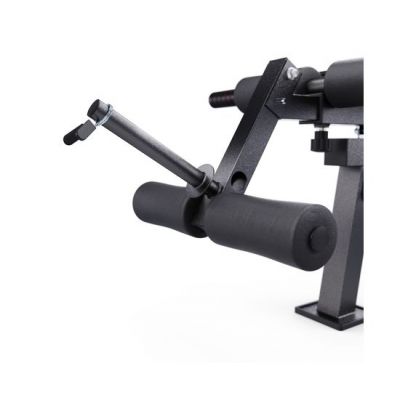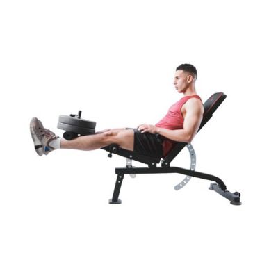Скамья спортивная оснащена 11 уровнями наклона спинки и 3 положениями сиденья, что позволяет выполнять разнообразные упражнения для проработки всех групп мышц. Оптимальная высота сиденья 43 см делает тренировки комфортными для людей любого роста. В комплекте также идут 4 мягких валика из вспененного материала для фиксации ног в разных положениях. Длина посадочного места под диски 18,5 см, посадочный диаметр для дисков равен 25 мм. В комплекте идёт пружинный замок для дисков.