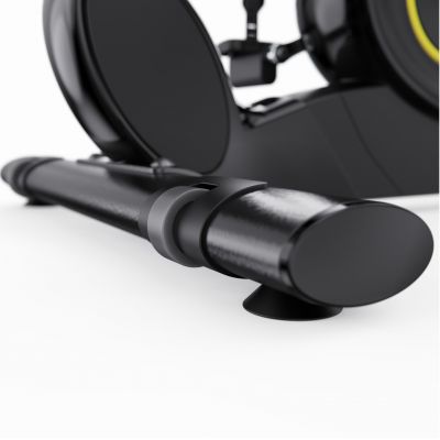 Для устойчивости тренажёр оснащён компенсаторами неровности пола, благодаря которым он надёжно стоит даже на неидеальной поверхности. Встроенные транспортировочные ролики позволяют легко переместить велотренажёр с места на место, что особенно удобно при использовании в ограниченном пространстве.
