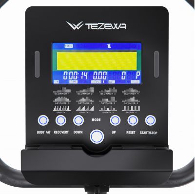 На встроенном LCD-дисплее с синей подсветкой отображаются все важные параметры тренировки: время, скорость, дистанция, калории, пульс (сенсорные датчики на поручнях), обороты в минуту (RPM), а также мощность в ваттах. Это делает тренировки максимально контролируемыми и эффективными.