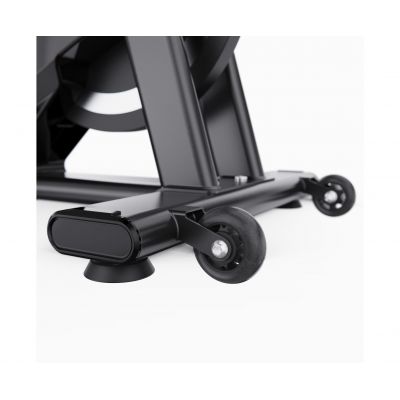 | Удобство в использовании. Тренажёр оснащён транспортировочными роликами, компенсаторами неровности пола и подставкой под планшет. | |